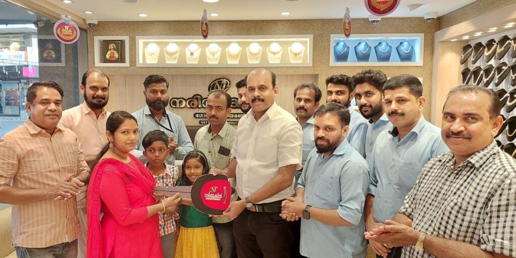 പേരാവൂർ നരിതൂക്കിൽ ഷോറൂമിൽ നടന്ന ചടങ്ങിൽ സമ്മാനാർഹയായ സിനി പ്രദീഷിന് മാനേജിംഗ് ഡയറക്ടർ ഷിനോജ് നരിതൂക്കിൽ താക്കോൽ കൈമാറി. സുഫൈർ ഫാമിലി, ജോളി കിഴക്കേടത്ത്,പി.സുരേഷ് എന്നിവരും ജീവനക്കാരും സംബന്ധിച്ചു.