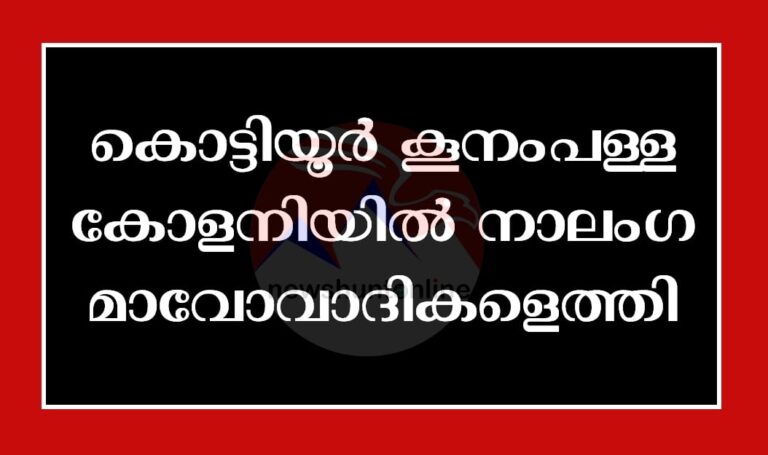 കൊട്ടിയൂർ: കൂനംപള്ള കോളനിയിൽ നാലംഗ മാവോവാദികളെത്തി.കോളനിയിലെ ദിനേശൻ എന്നയാളുടെ വീട്ടിലാണ് രണ്ടു സ്ത്രീകളും, രണ്ടു പുരുഷന്മാരുമടങ്ങുന്ന യൂണിഫോം ധാരികളായ മാവോവാദികൾ എത്തിയതായി പോലീസിന് വിവരം ലഭിച്ചത്. ശനിയാഴ്ച്ച...
