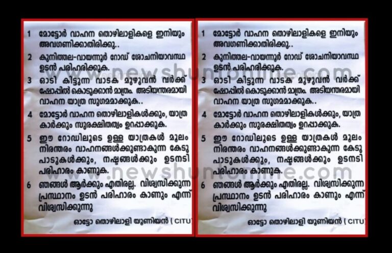 പേരാവൂര്: കുനിത്തല വായന്നൂര് റോഡ് തകർച്ചയുമായി ബന്ധപ്പെട്ട് പേരാവൂരിലും കുനിത്തലയിലും ഓട്ടോതൊഴിലാളി യൂണിയന്റെ(സി. ഐ.ടി.യു )പോസ്റ്റര് പ്രചരണം. മോട്ടോര് വാഹന തൊഴിലാളികളെ ഇനിയും അവഗണിക്കാതിരിക്കുക,കുനിത്തല വായന്നൂര് റോഡ്...