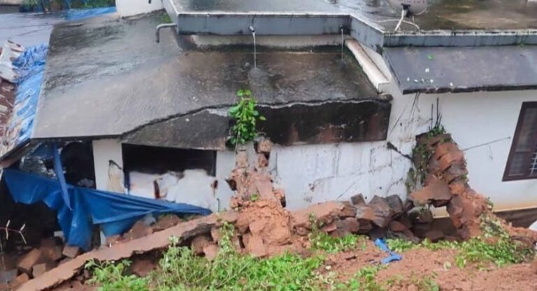 കോളയാട്: മതില് തകര്ന്ന് വീണ് വീട് ഭാഗീകമായി തകര്ന്നു. കോളയാട് പുന്നപ്പാലത്തെ കൂടക്കല് നാരായണിയുടെ വീടിന്റെ പുറകുവശമാണ് മതില് ഇടിഞ്ഞ് വീണതിനെ തുടര്ന്ന് ഭാഗീകമായി തകര്ന്നത്.