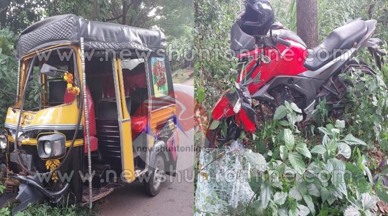 പേരാവൂർ: കൊട്ടിയൂർ റോഡിൽ ചെവിടിക്കുന്നിൽ ഓട്ടോറിക്ഷയും ബൈക്കും കൂട്ടിയിടിച്ച് അപകടം. പരിക്കേറ്റ രണ്ടു പേരെ പേരാവൂരിലെ സ്വകാര്യാസ്പത്രിയിൽ പ്രവേശിപ്പിച്ചു.ബുധനാഴ്ച വൈകിട്ട് 4.30 ഓടെയാണ് അപകടം