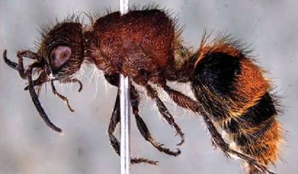 കോഴിക്കോട്: വെൽവെറ്റ് ഉറുമ്പുകൾ (വെൽവെറ്റ് ആന്റ്സ്) ഉറുമ്പുകളേയല്ല, ഒട്ടേറെ സവിശേഷതകളുള്ള കടന്നൽ വിഭാഗമാണിവ. പെൺ വിഭാഗത്തിന് ചിറകില്ലാത്തതു കാരണം കണ്ടാൽ ഉറുമ്പുകളെപ്പോലിരിക്കും. പാലക്കാട് സൈലന്റ്വാലി ദേശീയോദ്യാനത്തിൽനിന്ന് പുതിയൊരിനം...
