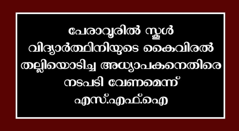 പേരാവൂർ: വിദ്യാർത്ഥിനിയുടെ കൈവിരൽ തല്ലിയൊടിക്കുകയും നിരവധി വിദ്യാർത്ഥികളെ മർദ്ദിക്കുകയും ചെയ്ത അധ്യാപകനെതിരെ നടപടിയാവശ്യപ്പെട്ട് എസ്.എഫ്.ഐ പേരാവൂർ ഏരിയാ കമ്മിറ്റി രംഗത്ത്.പേരാവൂർ സെയ്ൻ്റ് ജോസഫ്സ് ഹൈസ്കൂൾ അധ്യാപകൻ ബൈജു...