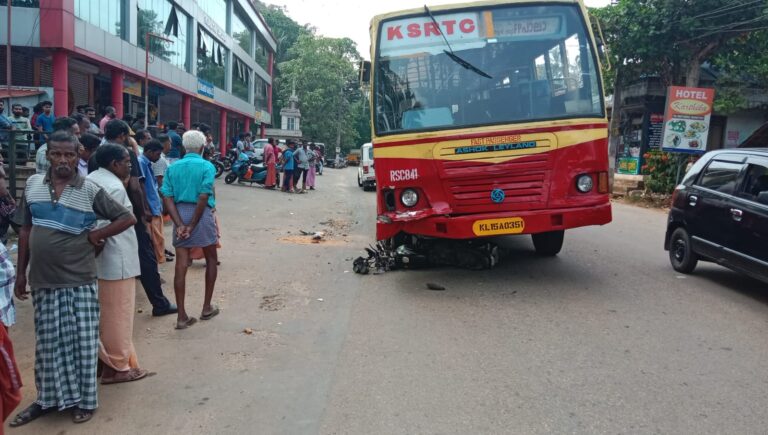 കോട്ടയം: പാലായിൽ കെ.എസ്.ആര്.ടി.സി. ബസും ബൈക്കും കൂട്ടിയിടിച്ച് ബൈക്ക് യാത്രികരായ ദമ്പതികൾ മരിച്ചു. വലവൂർ സ്വദേശികളായ പാറയിൽ രാജൻ (54), ഭാര്യ സീത (52) എന്നിവരാണ് മരിച്ചത്....
