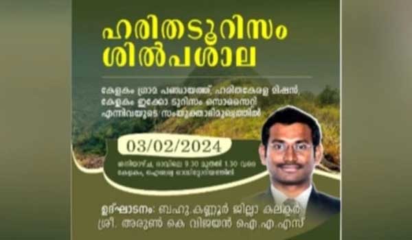 കേളകം: കേളകം ഗ്രാമ പഞ്ചായത്ത്, ഹരിതകേരള മിഷൻ, കേളകം ഇക്കോ ടൂറിസം സൊസൈറ്റി എന്നിവയുടെ സംയുക്താഭിമുഖ്യത്തിൽ ഹരിതടൂറിസം ശിൽപശാല നാളെ രാവിലെ 9.30 മുതൽ 1.30 വരെ...