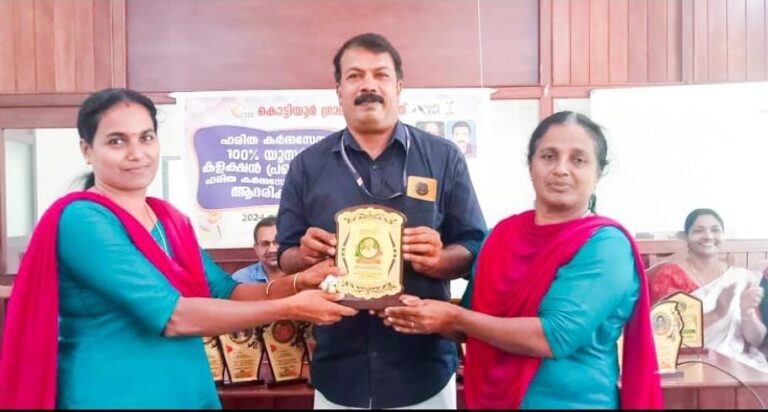കൊട്ടിയൂർ: പഞ്ചായത്തിലെ മുഴുവൻ വീടുകളിൽ നിന്നും ശുചിത്വ പരിപാലനത്തിനുള്ള പ്രതിമാസ യൂസർ ഫീ ശേഖരിച്ചതിന്റെ പ്രഖ്യാപനവും ഹരിതകർമസേനക്കുള്ള ആദരവും നടന്നു.പഞ്ചായത്ത് പ്രസിഡന്റ് റോയ് നമ്പുടാകം ഹരിതകർമസേനയെ മൊമെന്റോ...