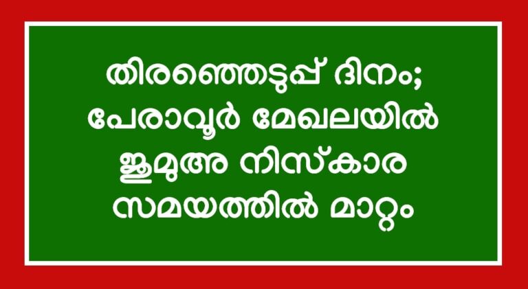 പേരാവൂർ: ലോകസഭാ തിരഞ്ഞെടുപ്പ്ദിനം വെള്ളിയാഴ്ചയായതിനാൽ പേരാവൂർ മേഖലയിലെ പള്ളികളിൽജുമുഅ നിസ്കാരത്തിന്റെ സമയം പുനർ ക്രമീകരിച്ചു. പേരാവൂർ ടൗൺ ജുമാ മസ്ജിദിൽ ഒരു മണി, ചെവിടിക്കുന്ന് ജുമാ മസ്ജിദിൽ...