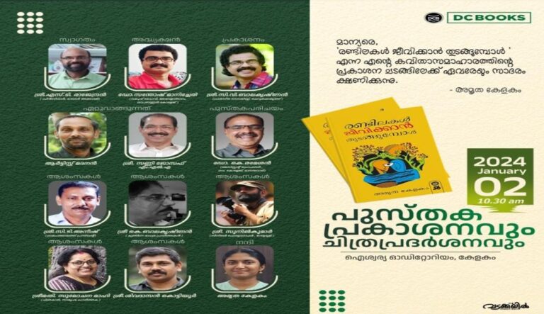 കേളകം: അമൃത കേളകത്തിൻ്റെ രണ്ടിലകൾ ജീവിക്കാൻ തുടങ്ങുമ്പോൾ എന്ന കവിതാ സമാഹരത്തിൻ്റെ പ്രകാശനം ചൊവ്വാഴ്ച കേളകത്ത് നടക്കും. കേളകം ഐശ്വര്യ ഓഡിറ്റോറിയത്തിൽ വച്ച് രാവിലെ 10.30 ന്...