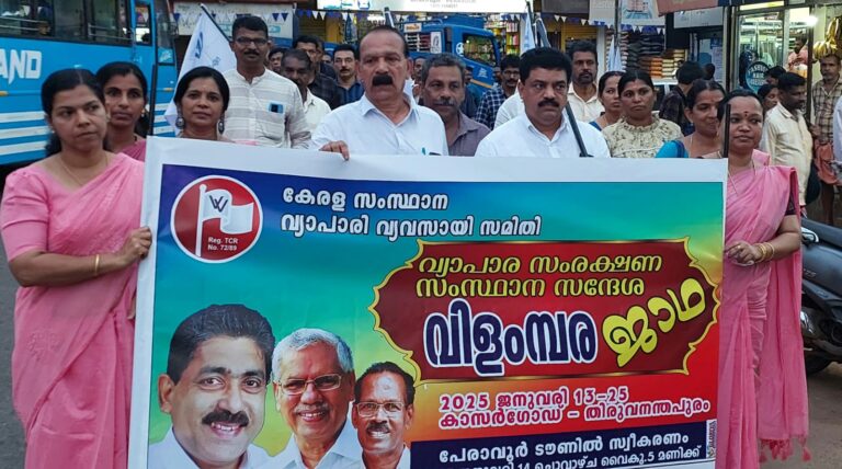 പേരാവൂർ: വ്യാപാരി വ്യവസായി സമിതിയുടെ വ്യാപാര സംരക്ഷണ സന്ദേശ സംസ്ഥാന ജാഥയുടെ ഭാഗമായി പേരാവൂർ ടൗണിൽ വിളംബര ജാഥ നടത്തി. ഏരിയ സെക്രട്ടറി എം.കെ.അനിൽകുമാർ ഉദ്ഘാടനം ചെയ്തു....