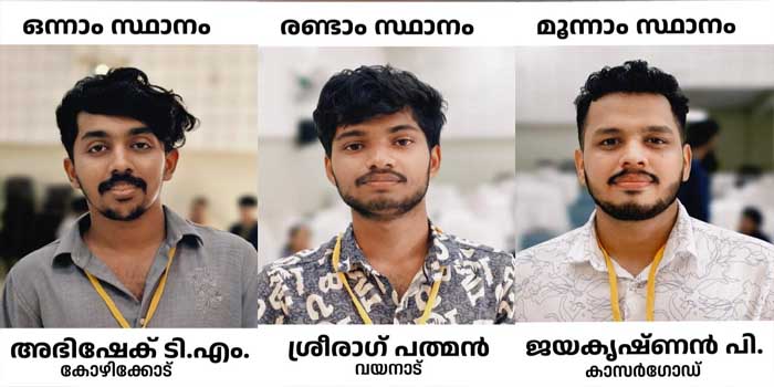 ദേശീയ യുവജന ദിനാഘോഷത്തോടനുബന്ധിച്ച് സംസ്ഥാന യുവജന കമ്മീഷന് സംഘടിപ്പിച്ച സംസ്ഥാനതല ചെസ്സ് മത്സരത്തില് കോഴിക്കോട് ഒളവണ്ണ സ്വദേശി ടി.എം അഭിഷേക് വിജയിയായി. വയനാട് മീനങ്ങാടി സ്വദേശി ശ്രീരാഗ്...