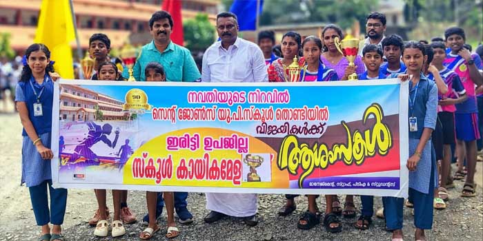 പേരാവൂർ : ഇരിട്ടി ഉപജില്ല കായികമേളയിൽ എൽ.പി, യു.പി വിഭാഗം ഓവറോൾ ചാമ്പ്യൻഷിപ്പ് നേടിയ തൊണ്ടിയിൽ സെയ്ൻറ് ജോൺസ് യു.പി. സ്കൂൾ വിജയാഘോഷം നടത്തി.തൊണ്ടിയിൽ ടൗണിലേക്ക് റാലിയായി...