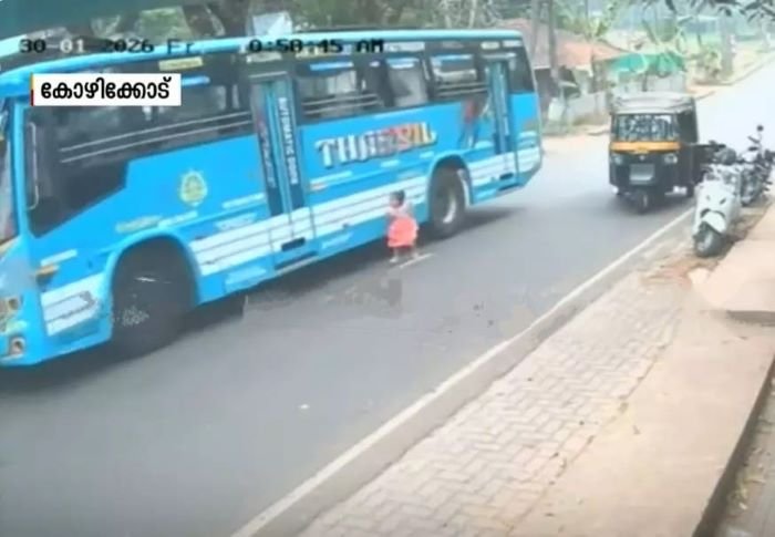 കോഴിക്കോട്: കോഴിക്കോട് കൊടിയത്തൂരിൽ ബസിന് മുന്നിലേക്ക് ഓടിയ കുട്ടി അത്ഭുതകരമായി രക്ഷപ്പെട്ടു. ബസ് ഡ്രൈവറുടെ സമയോചിതമായ ഇടപെടലിനെ തുടർന്നാണ് വലിയ അപകടം ഒഴിവായത്.കുട്ടി റോഡ് മുറിച്ചുകടക്കുന്നതാണ് വീഡിയോയിലുള്ളത്....